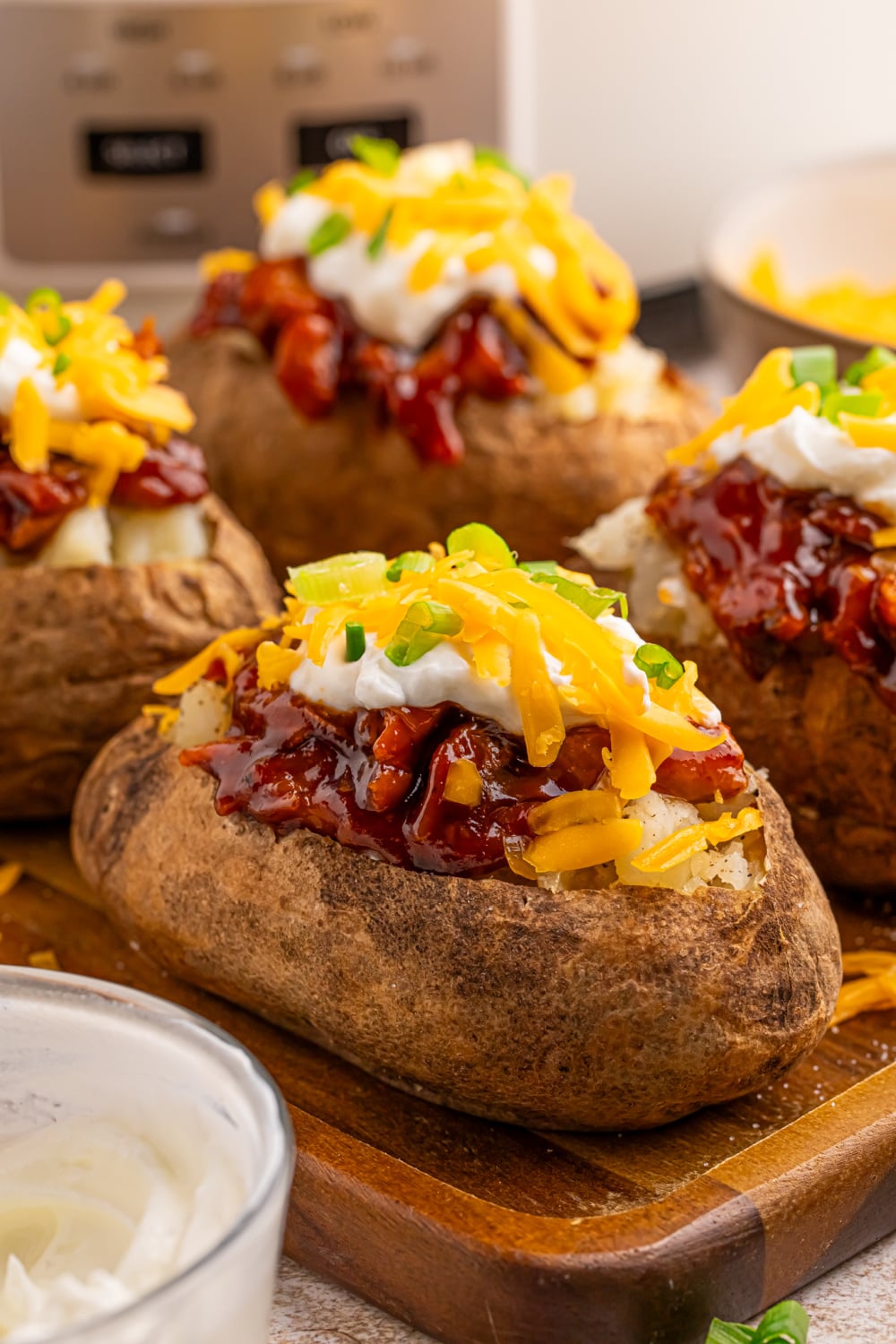 Slow Cooker BBQ Chicken Loaded Baked Potatoes